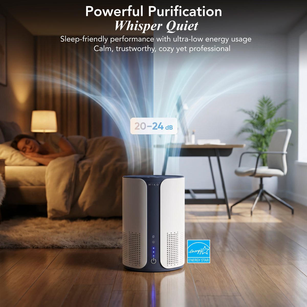 The Ibuki Air Purifier by Miko is a cutting-edge device designed to enhance indoor air quality with its three-stage filtration system, including HEPA, activated carbon, and ionization technologies, effectively capturing and eliminating dust, allergens, and odors. This purifier also includes an integrated oil diffuser, allowing you to enjoy the benefits of aromatherapy. With intelligent sensor technology, it continuously monitors air quality and adjusts purification settings automatically. The sleek and modern design ensures it fits seamlessly into any living or working space, providing both aesthetic appeal and functional performance, making it a comprehensive solution for a healthier and more pleasant environment.